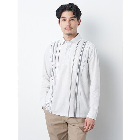 ランダムに柄を組み合わせた長袖の鹿の子ストライプポロシャツ。存在感のある柄感、爽やかなカラーリングがおすすめの1着。肌触りや通気性にこだわり、季節の変わり目でも使いやすい素材を使用。