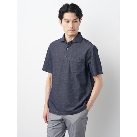 ハニカムボーダー半袖ポロシャツ