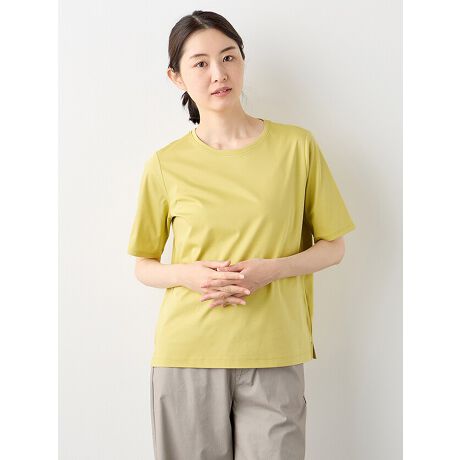 [型番:6204756]滑らかな肌触りと1枚で着用しやすい、程よい肉感のあるTシャツ。目の詰まったきれいな表面感のスムースにシルケット加工を施した上質な素材を使用しています。今年はベーシックな白と綺麗なピンク・イエローカラーを揃えています。初夏を彩るコーディネートに活躍するアイテムです。