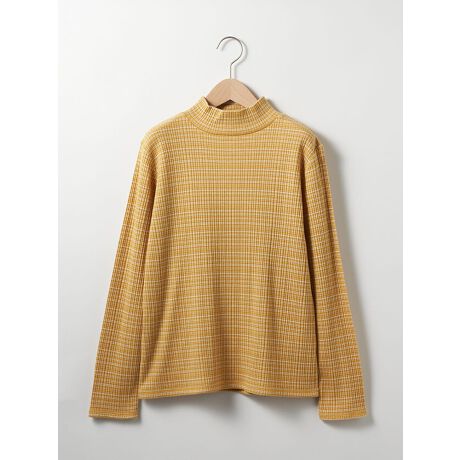 ウォーム感のあるランダムボーダーのテレコハイネックプルオーバー。動きのあるボーダーピッチがカジュアルすぎない落ち着いた雰囲気に。柔らかくてさらりとした生地が心地よく、寒さの残る季節から春にかけて長く着用いただける大活躍なカットソーです。