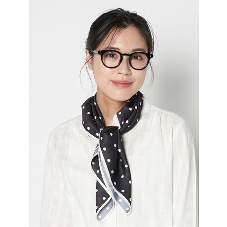 ドット柄のスカーフ。素材は軽やかで発色も綺麗なポリエステル100%です。ジーニングスタイルにも綺麗目コーディネートにも合う3色を用意しました。お出かけの時に気軽に持っていただけるコンパクトサイズは贈り物にも喜ばれるアイテムです。