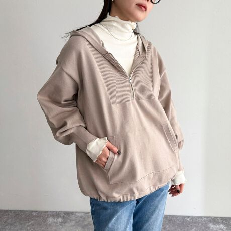 ・大人のカジュアルコーデがお洒落に決まるニットアノラックパーカーです