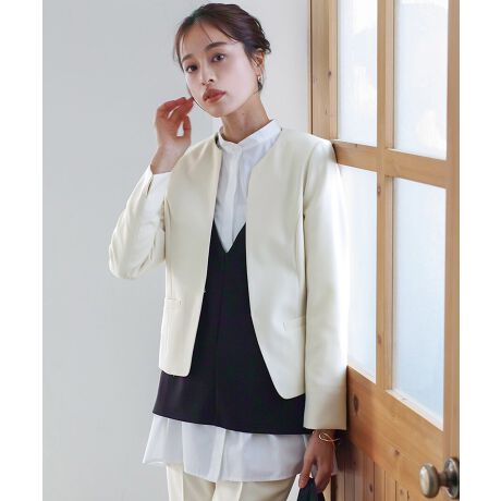 オフィスもフォーマルも軽キレイ【 洗濯機で洗える 】 杢調カラーレスジャケット
