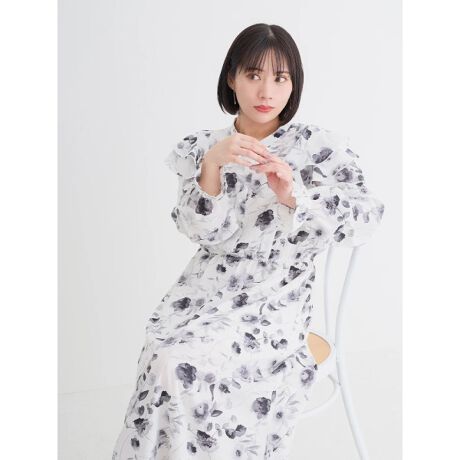 水彩画のように描かれた花柄がエレガントな印象の着映えワンピース