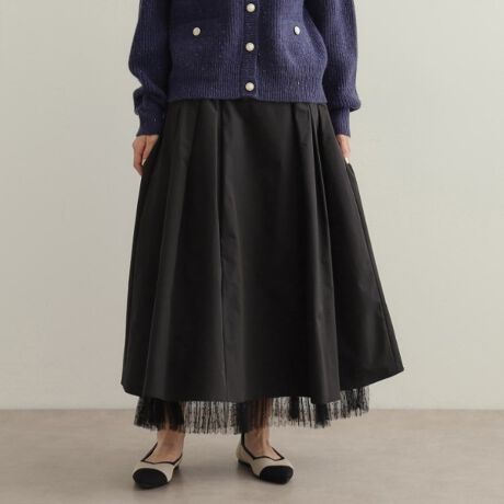 裾からチュールプリーツをドッキングさせたデザインフレアスカート