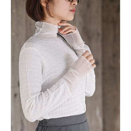 重ね着にも使えるシアー切替トップス