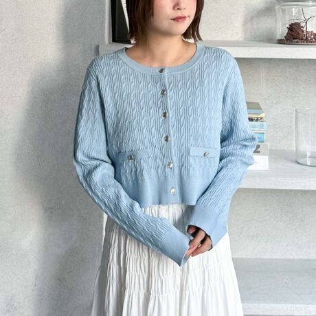 トレンドとベーシックを押さえたケーブルカーディガン。