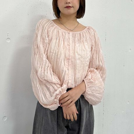 首元にはゴムが入っており、オフショルブラウスとしても着用可能。