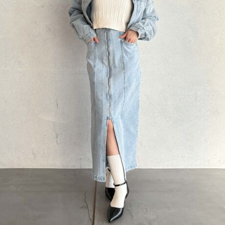 ストレッチデニムFzipタイトスカート/