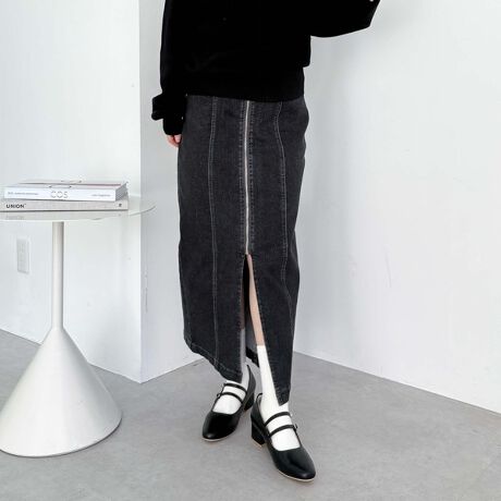 ストレッチデニムFzipタイトスカート/