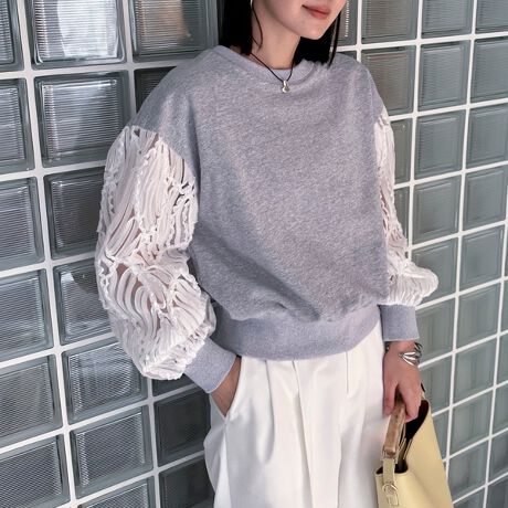 ・袖はシアー素材にあしらったテープが立体感を生み、レースのような透け感に