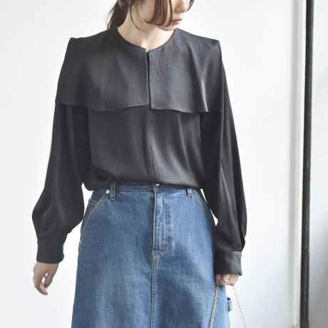 ケープデザインがポイントのサテンブラウス。