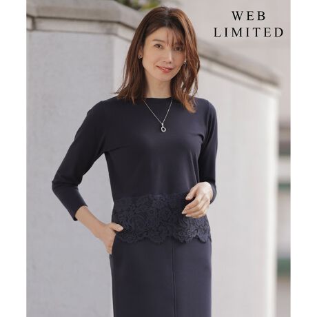 可憐な女性らしさを演出する、ストレスフリーな着心地のレースドッキングニット