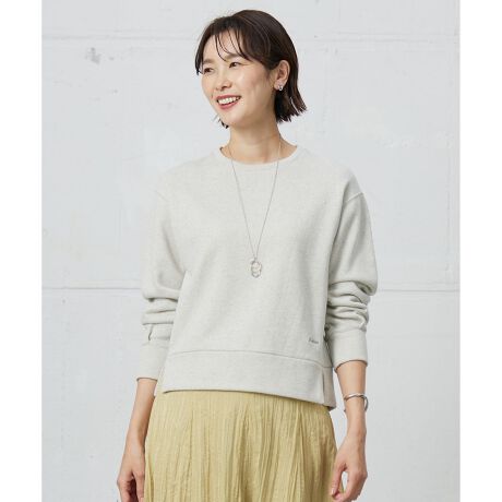 コンパクトで女性らしい、スウェット型カットソー。左裾には刺繍でミニロゴを入れており、さりげないポイントにしています。脇線を前ぶりにして、裾にスリットを入れており、カジュアルになりすぎないデザインです。