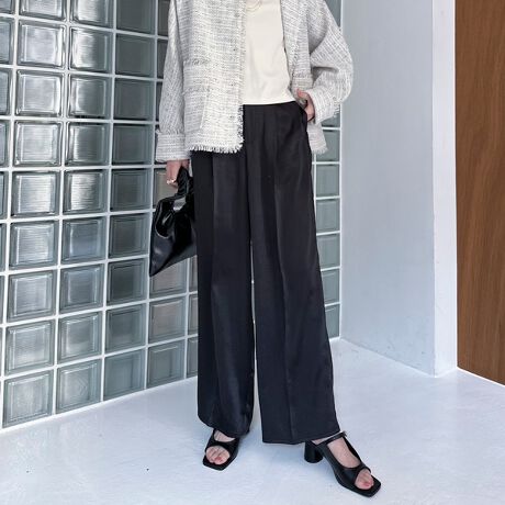 サテンワイドストレートパンツ