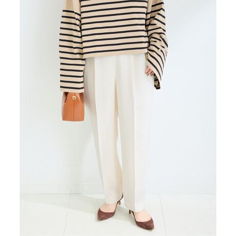 裾にかけてテーパードさせたすっきりとしたシルエットで、足元はキレイめなヒールやパンプルをあわせることでより上品な印象を演出してくれます。
