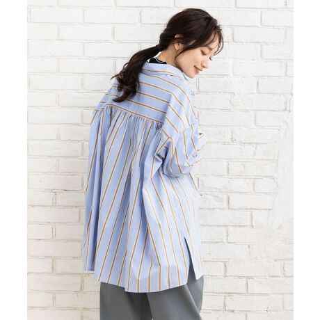シーズンムード高まる、春カラーストライプシャツ。
