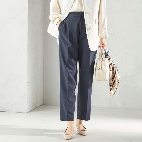 もちろんお手持ちのどんなジャケット・ブラウスとも着ていただけますのでビジネスシーンで1本は持っておきたいベーシックパンツです。