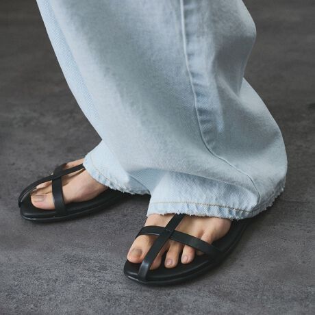 華奢でシンプルなストラップサンダル。足をしっかりとホールドするデザインで安定感があり、足入れもしやすい抜群の履き心地です。