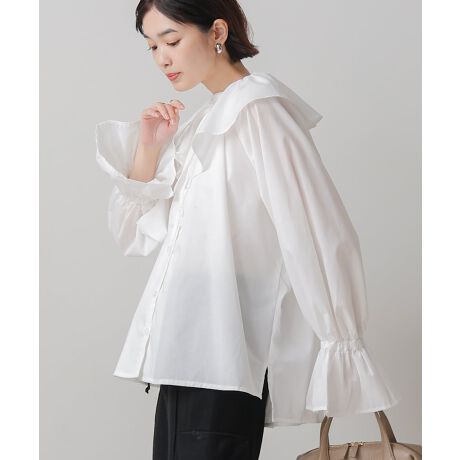 甘くなりがちな印象のフリルブラウスですが、ラグランスリーブ×オーバーサイズで程よくカジュアルダウンできる1枚に仕上がっています。