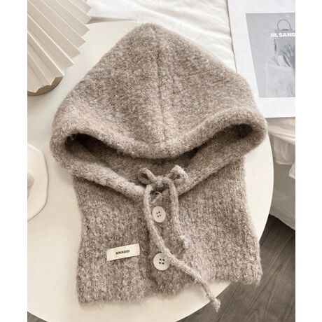 ふんわりとした素材感と色合いが優しい雰囲気をプラスし、頭から首元までしっかりと暖めてくれる寒い季節に持ってると便利なアイテムです