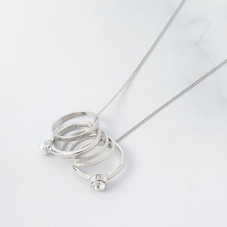 【指輪にも】パール調ビジュー5リングネックレス