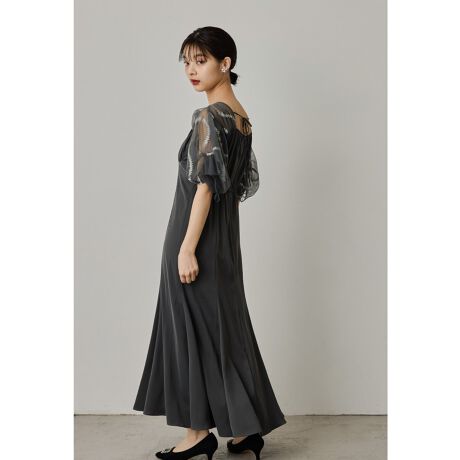 裾にかけてゆるやかなマーメイドラインになっており、フィットしすぎず美しいボディラインに。