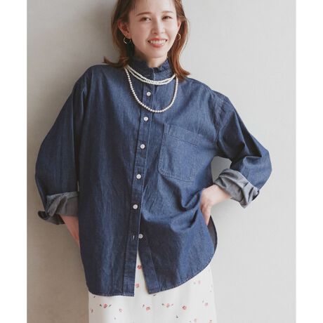 フリルカラーデニムシャツ