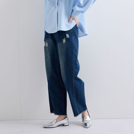 カーブダメージデニムパンツ≪洗濯機で洗える≫