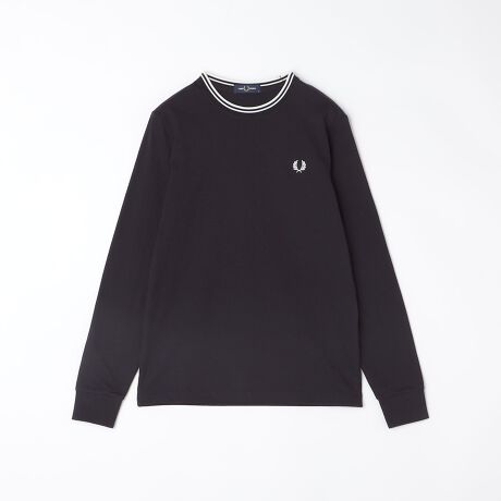 フレッドペリーのシグニチャーであるティップラインをネックに施したクルーネックTシャツ。