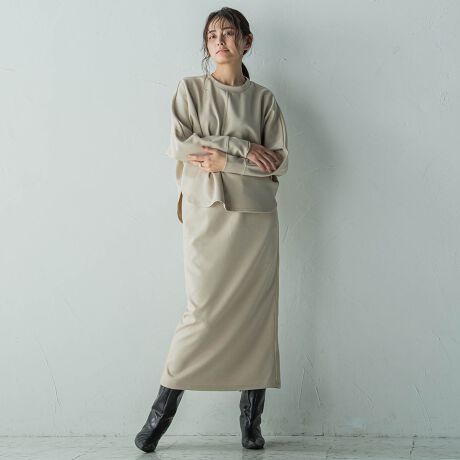 さりげないラメラインがアクセントになった、スカートセットアップ。