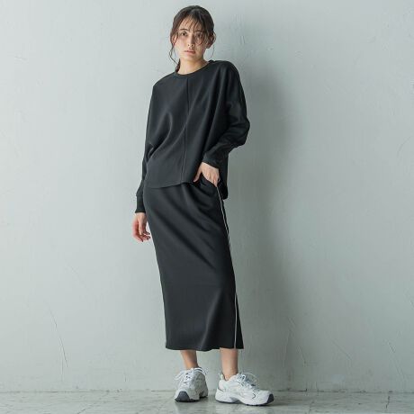 さりげないラメラインがアクセントになった、スカートセットアップ。