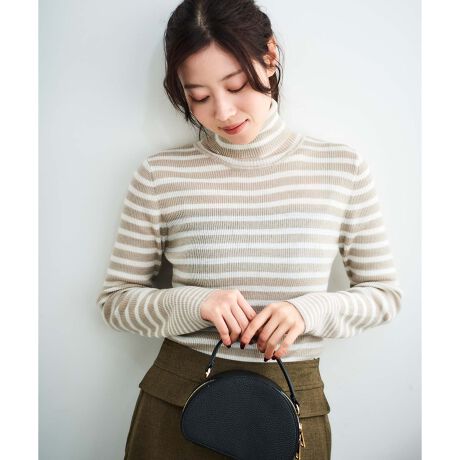 [型番:3048029213]滑らかで柔らかい風合いのリブタートル。レイヤードがマストな今シーズンも1枚あると大活躍間違いなしです。●ポイントラメリブは角度で輝きを感じさせるラメ混紡仕立てで、ほんのりと女性らしさが香る大人スタイルに。ボーダー柄は袖口と裾のボーダーのピッチアレンジで遊び心をプラス。●おすすめコーデ1枚で着るのはもちろん、ワンピースやサロペットのインナーにもおすすめです。シャツやゆるめのニットとのレイヤードスタイルも楽しめます。