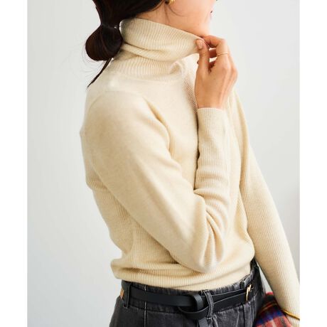 ラメリブは角度で輝きを感じさせるラメ混紡仕立てで、ほんのりと女性らしさが香る大人スタイルに。ボーダー柄は袖口と裾のボーダーのピッチアレンジで遊び心をプラス。