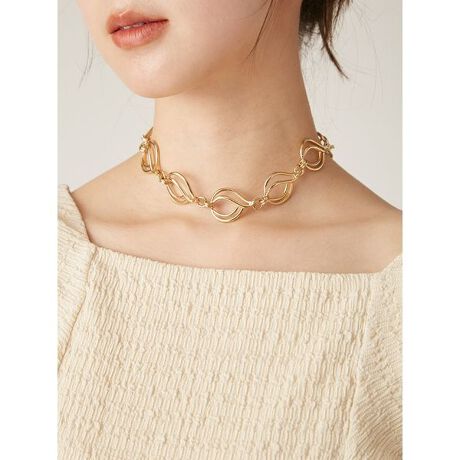 ドロップ型チェーンを組み合わせた、レトロな雰囲気漂う大ぶりネックレスが。ひとつひとつのチェーンが大きくデザインされており、首元に存在感をプラスします。シンプルなトップスやドレスに合わせて、首元を主役にしたスタイリングにもぴったり。ボリューム感がありながら軽い付け心地で、長時間の着用も快適です。フックを採用し、簡単に着脱できる仕様にしました。