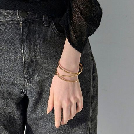 【ニュアンス感のある3連風のメタルラインがトレンドライクなバングル】