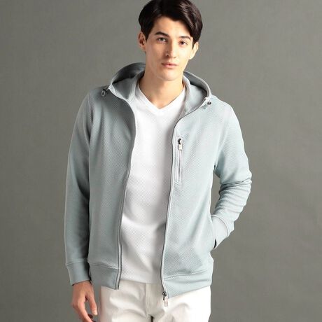 首元までしっかりと立つフードがポイント。光沢あるムッシュニコルオリジナルジップを採用。フロント部分は、ダブルジップ仕様で、気分に合わせてフォルムを変える事が可能。