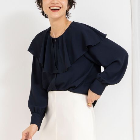 ・ケープのような大きめカラーがポイントの華やぎブラウス