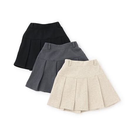 幅広いプリーツが可愛らしいスカパンです。<br>ウール見えするカット素材のため、軽やかに着用できます。<br>ウエストは総ゴム仕様となっており、お着替えもイージー。<br>シンプルなデザインでスタイリングしやすい定番アイテムです。<br>右側にポケットつき。<br>【おすすめの着用時期は秋冬シーズン】<br>【透け感】透けない<br>【生地の厚さ】厚い<br>【伸縮性】なし<br>【裏地】あり<br>【ポケット】あり<br>【アジャスター】あり