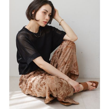フラワー柄のジャガードが目をひく柄パンツ。サテンの光沢感が春らしさと女性らしさを出してくれて、トップスとの素材のコントラストが出やすいので、