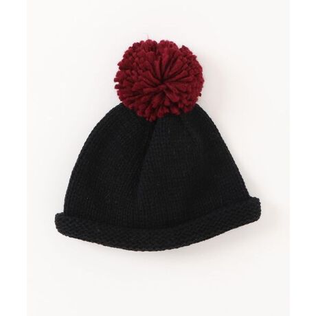 【aimoha-KIDS-】ポンポン付きバイカラーニット帽子【AW】