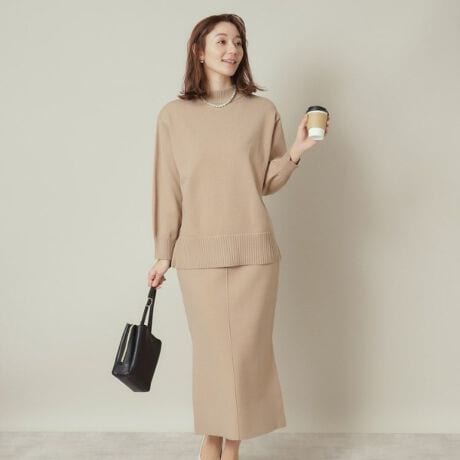 春らしい爽やかなカラーリングが目を惹くニットセットアップ。