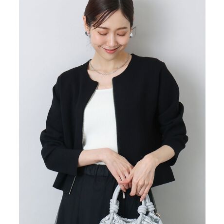 きれいめな印象で着こなせるジップアップデザインのニットブルゾン。衿や裾、袖口をあえて切り替えず、すっきりと仕上げたミニマルなデザインです。コンパクトな見え感ながらも程よくゆとりがあるのも着心地が良い理由に。