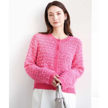 ぱっと見た目が可愛く好印象なツイード調のニットカーディガン。クルーネックのコンパクトな丈感で、普段使いからONシーンまで、一枚羽織って華やかに着映えるカーディガンです。