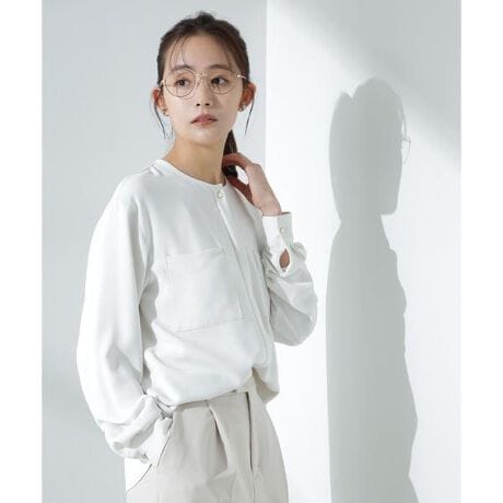 上品さとリラックスムードを兼ね備えたWポケットブラウス。とろみのある上品な素材感ながらも、胸元のフラップポケットが程よくカジュアルな雰囲気を演出。透けの無い少し厚地で綾目のパウダリージョーゼットが、通勤シーンではもちろん、お出かけ着としても重宝します。