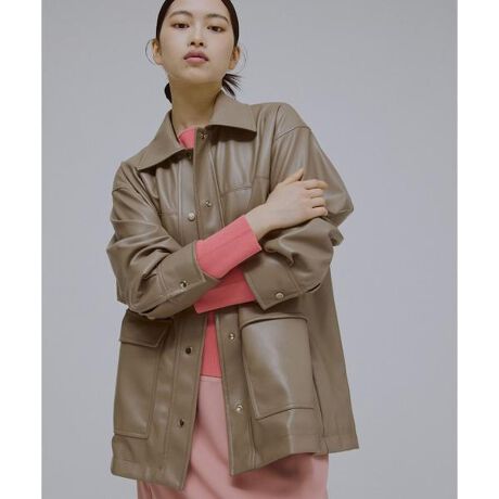 カーコート風デザインをシャツライクに落とし込んだフェイクレザージャケット。軽く柔らかなフェイクレザーでややオーバーサイズに仕上げているので、ラフに羽織るだけで今っぽく様になるアイテムです。