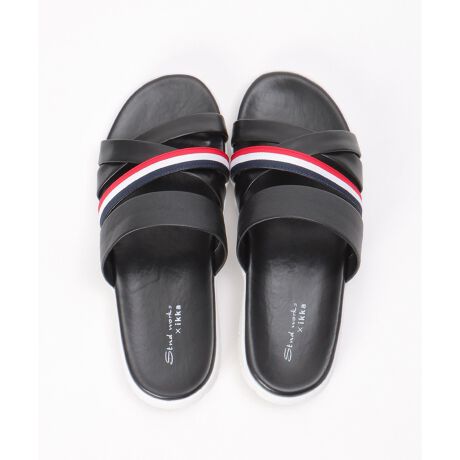 クロスベルトの1本にトリコロール配色のテープを使いアクセントにしたトングサンダルです。