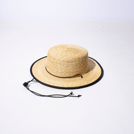 コード付きロングブリム麦わらハット。