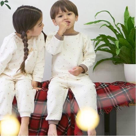 ちりばめられた星柄のキラキラプリントが楽しいキルト生地のパジャマです。