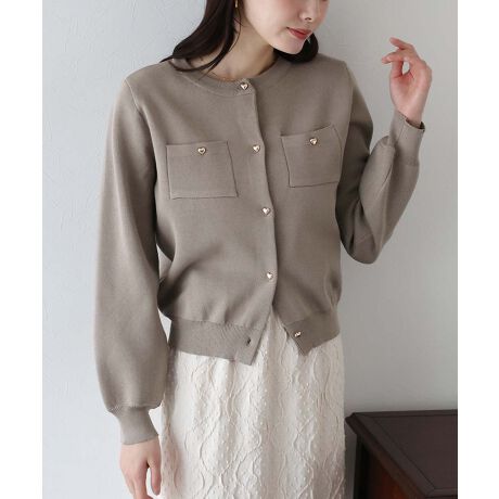 ぷっくりハートボタンが可愛らしいニットカーディガン